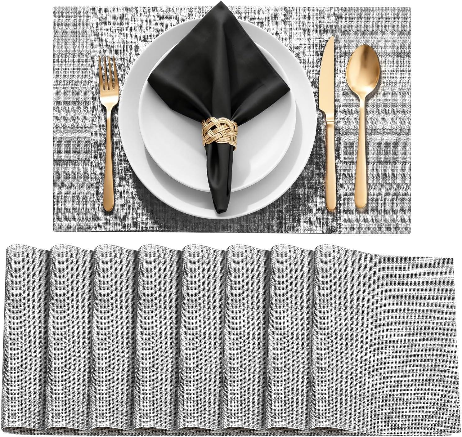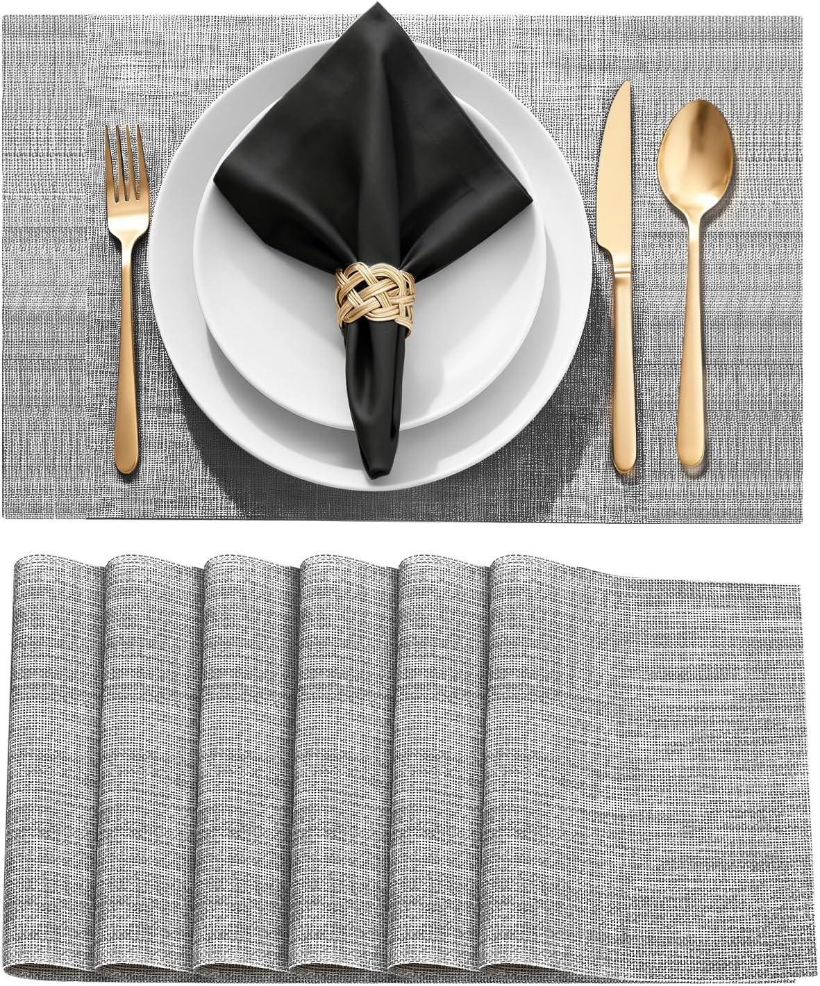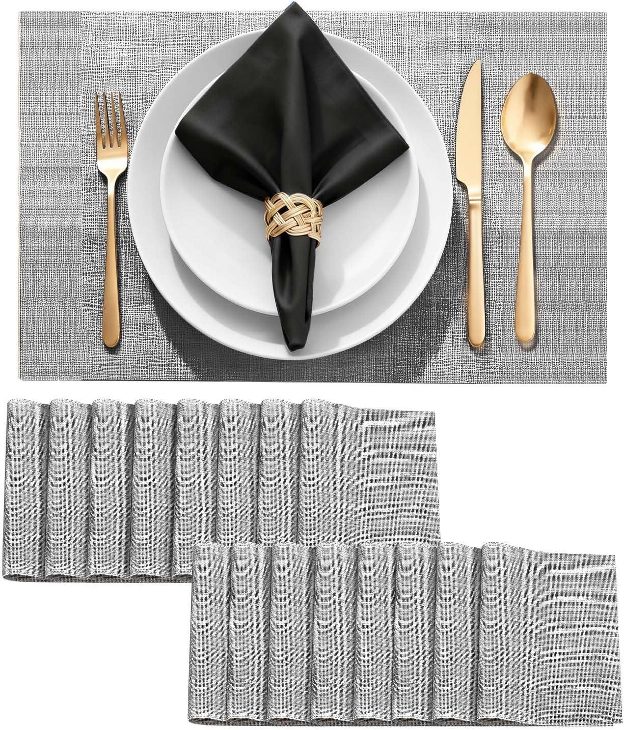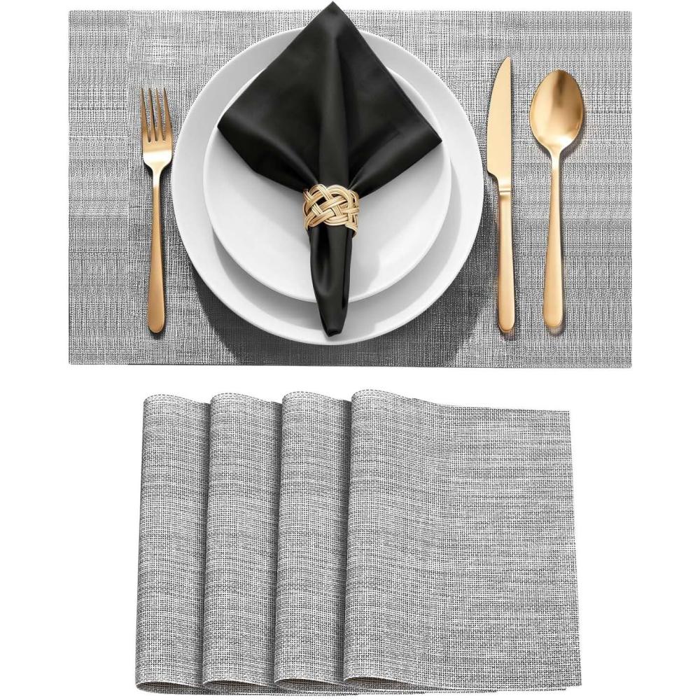 Durable Vinyl Placemats Set of 4, Non-Slip for Dining Table Mat, Heat Resistant Place Mats, Washable Anti-Slip PVC Easy to Clean Wipeable Premium Plastic Mats for Kitchen Beige(Gray)