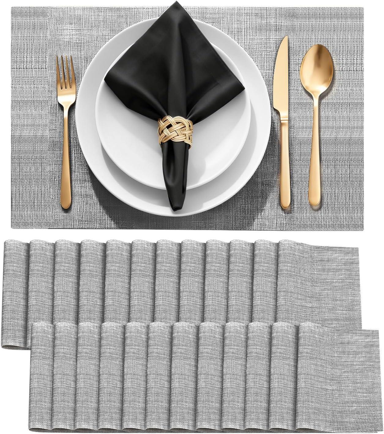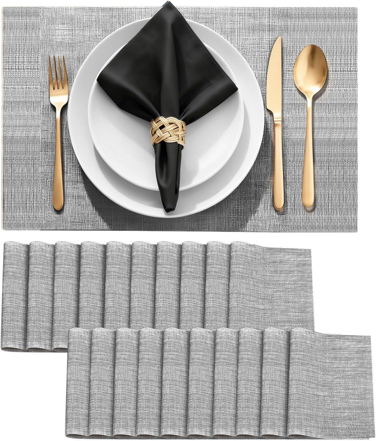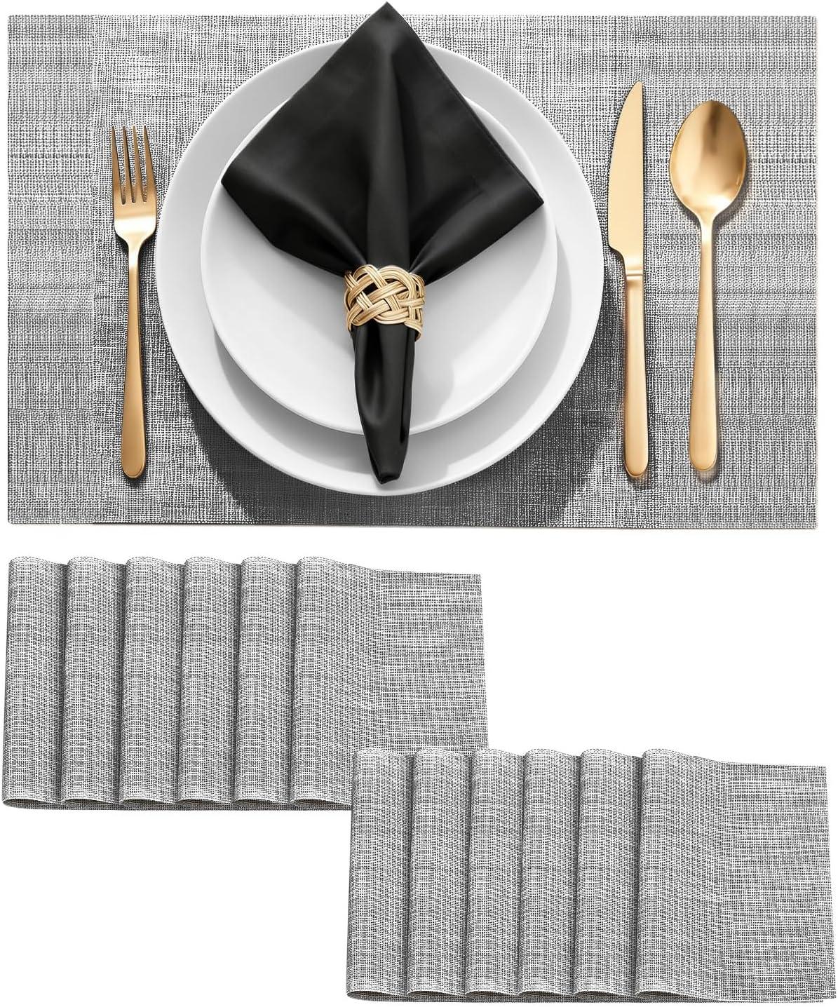 Durable Vinyl Placemats Set of 4, Non-Slip for Dining Table Mat, Heat Resistant Place Mats, Washable Anti-Slip PVC Easy to Clean Wipeable Premium Plastic Mats for Kitchen Beige(Gray)