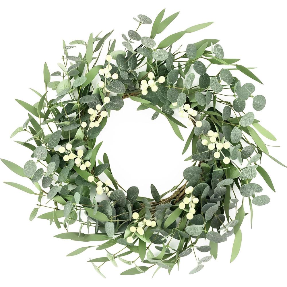 【Material】: This eucalyptus leaf wreath is made of metal and polyester fiber. It looks natural and realistic, requires no maintenance, stays green all year round, and lets you feel the breath of spring throughout the year.