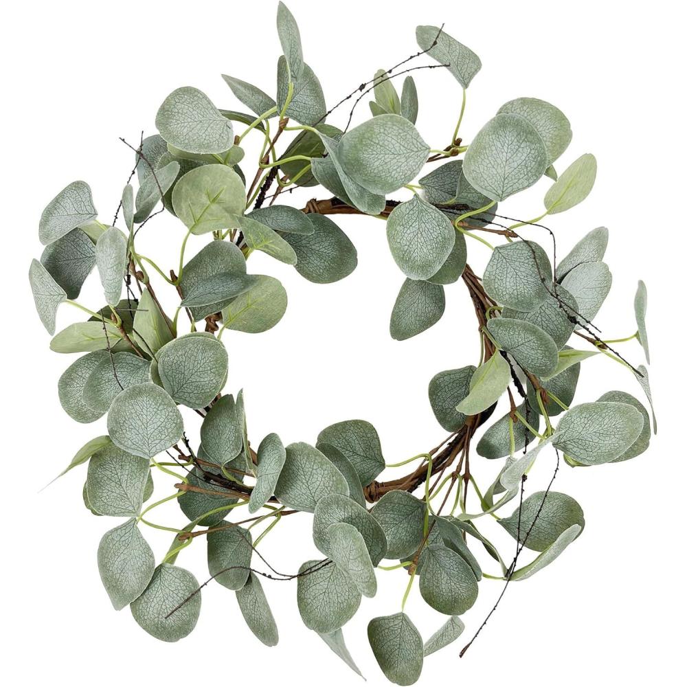 imagePinkpum 14 Eucalyptus Leaves Small Wreath for Front Door Green Wreath Porch Window Decor for Home Farmhouse Wall Table Spring Summer Fall Outdoor Indoor All SeasonsWhite