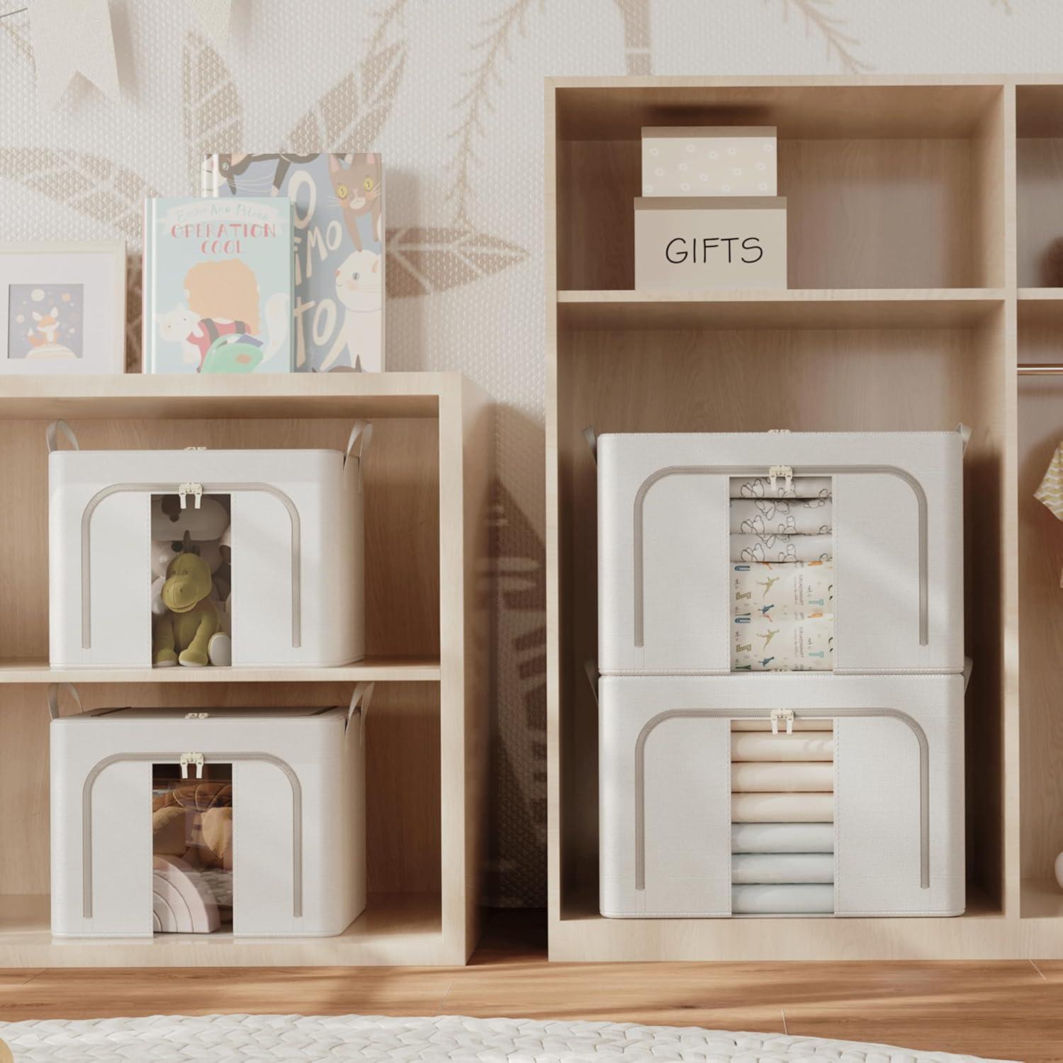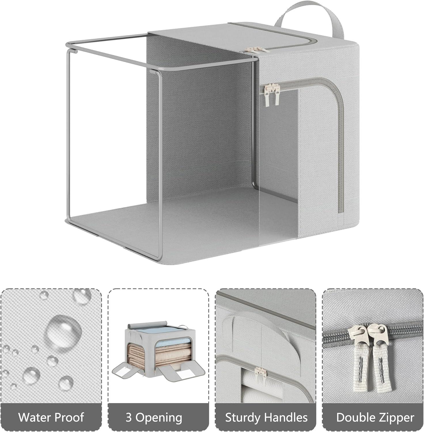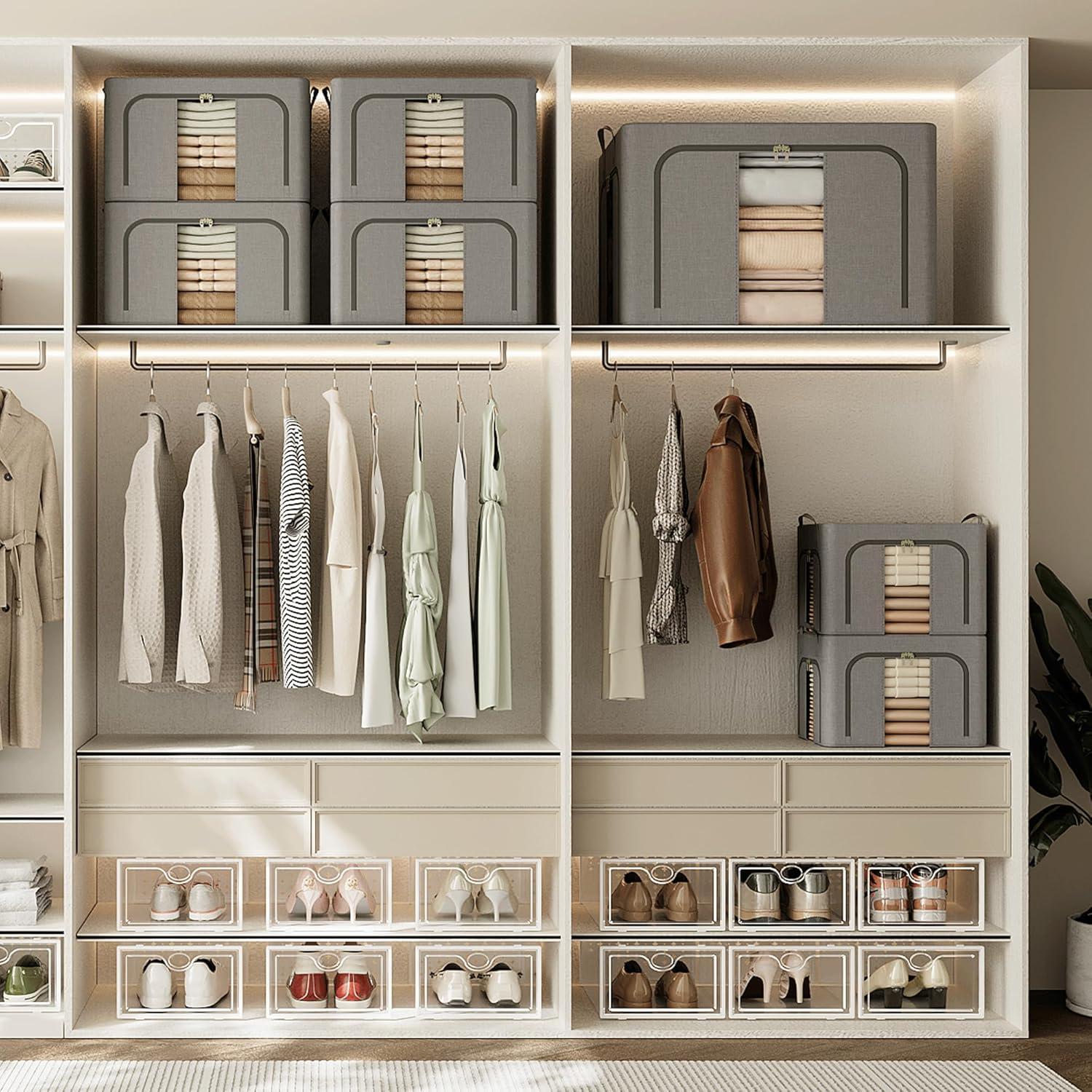 【STACKABLE & FOLDABLE】The Clothes Storage bags/boxes with stackable metal frame and solid bottom can keep full shape standing. Pops open into large storage bins.