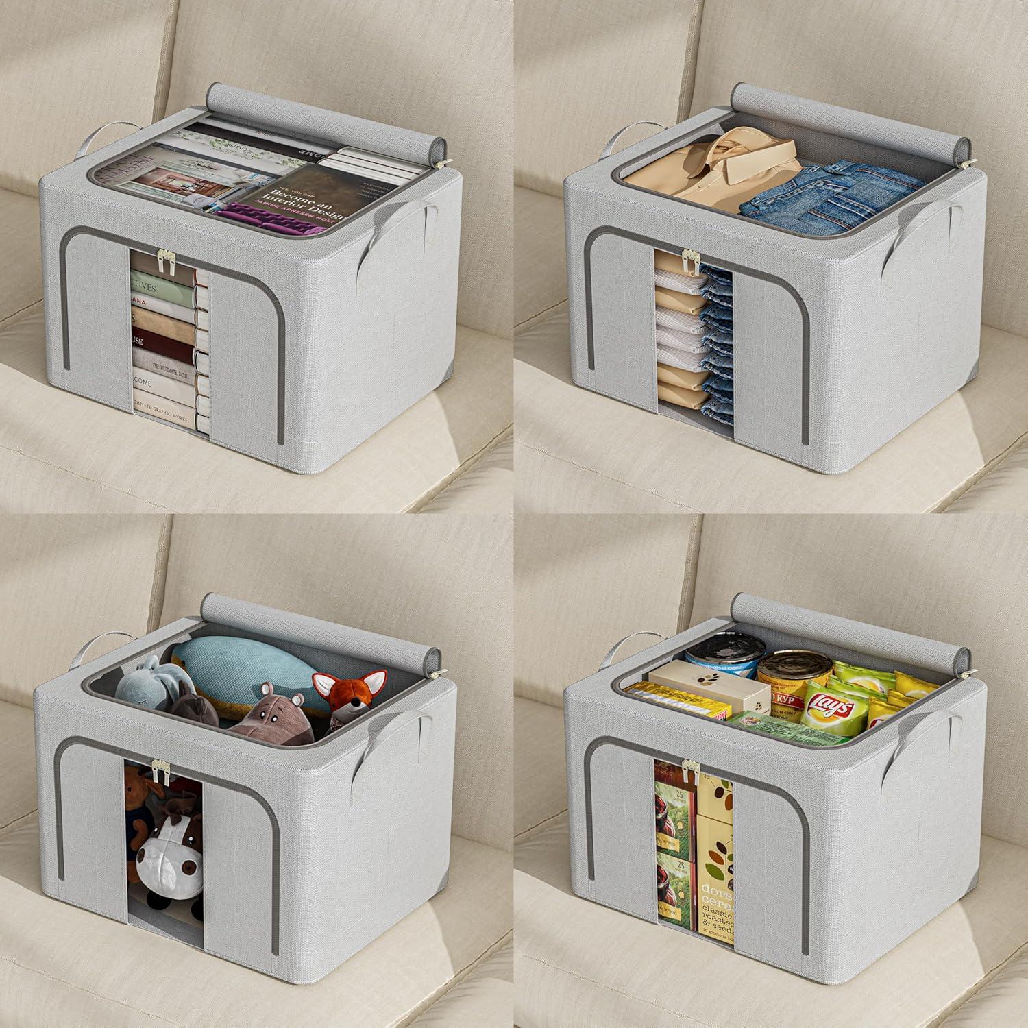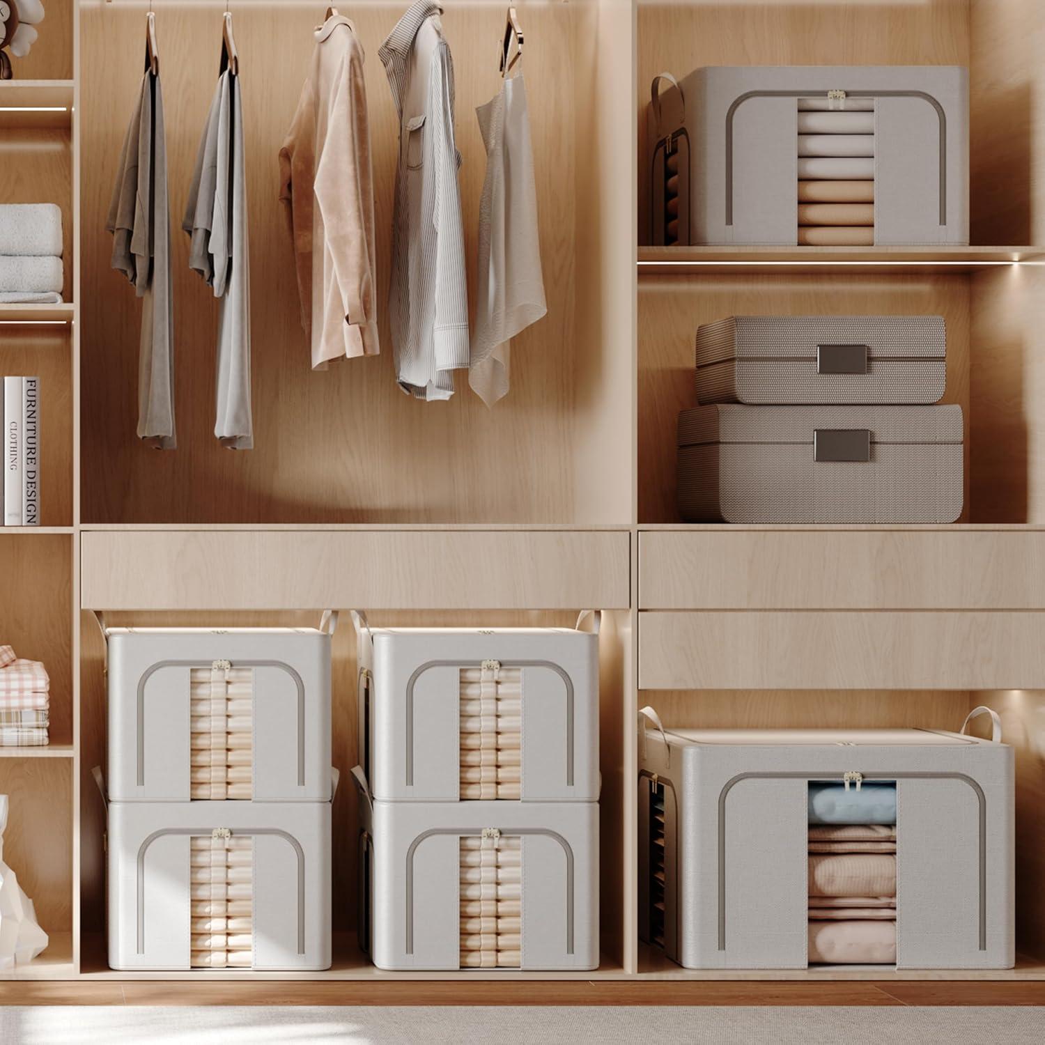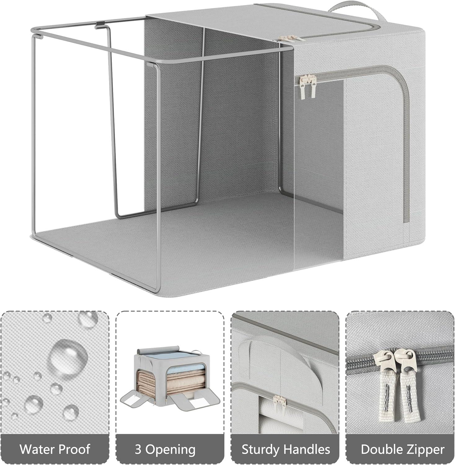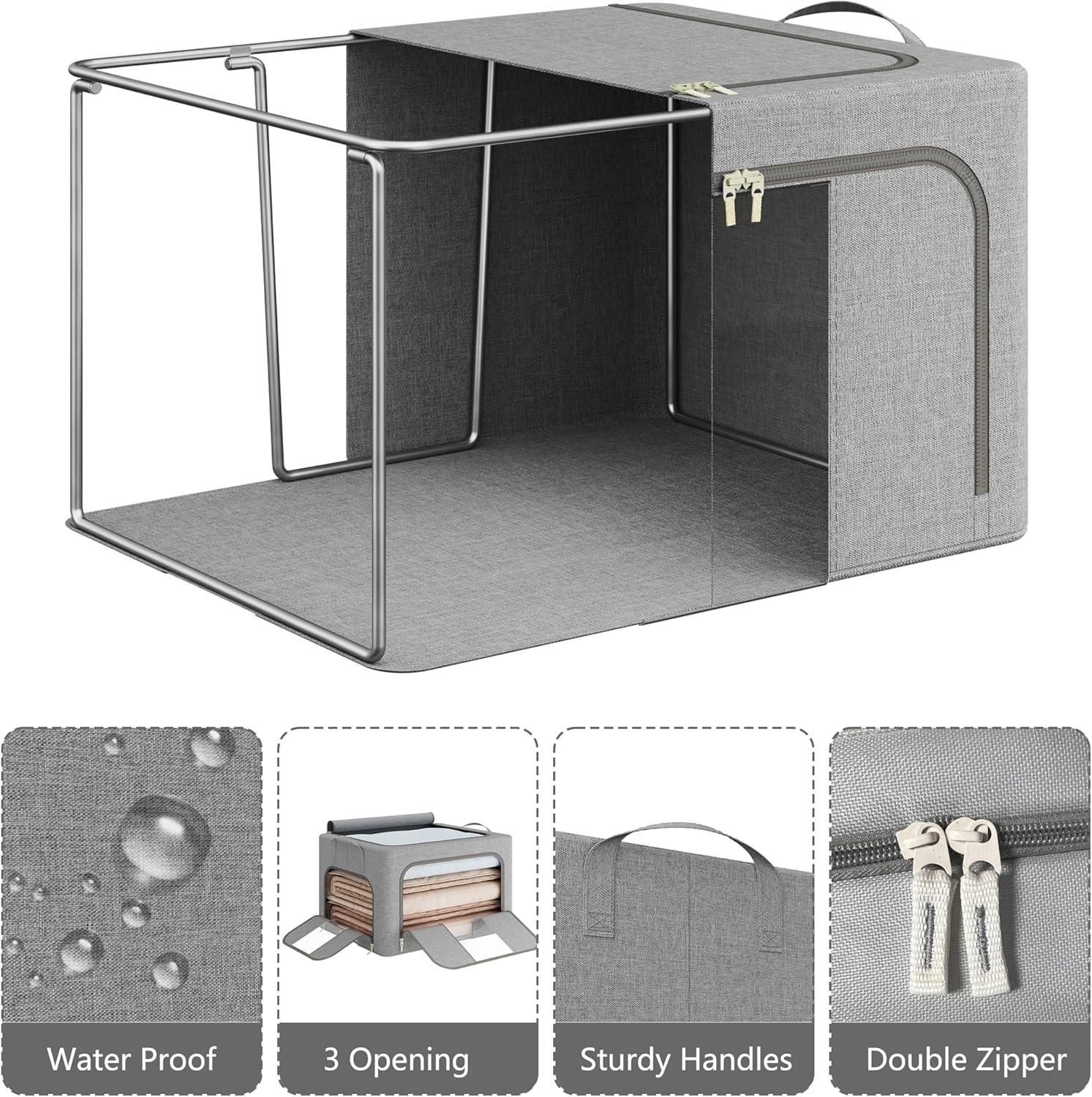 【STACKABLE & FOLDABLE】The Clothes Storage bags/boxes with stackable metal frame and solid bottom can keep full shape standing. Pops open into large storage bins.
