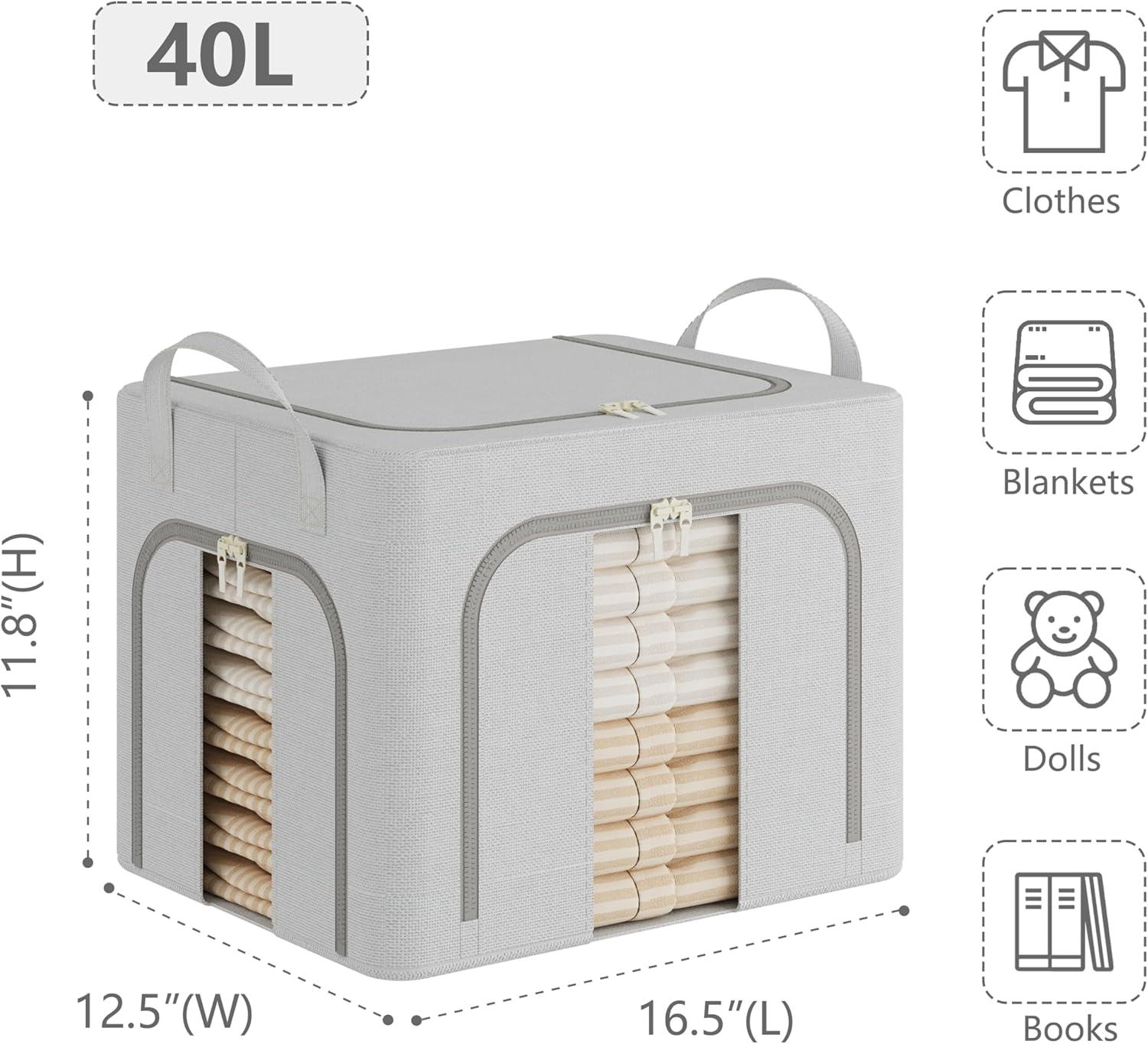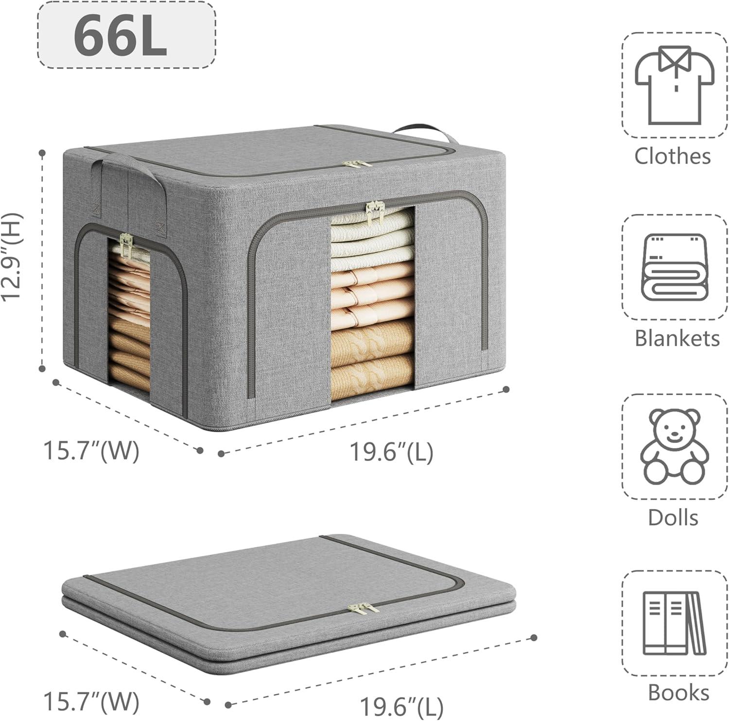 imagePinkpum 3 Pack Clothes Storage Bins with Metal Frame Closet Organizers and Storage Boxes Stackable ampamp Foldable Clothes Organizer Bags with Large Clear Window ampamp Long Carry Handles Grey Pattern 66LLight Grey
