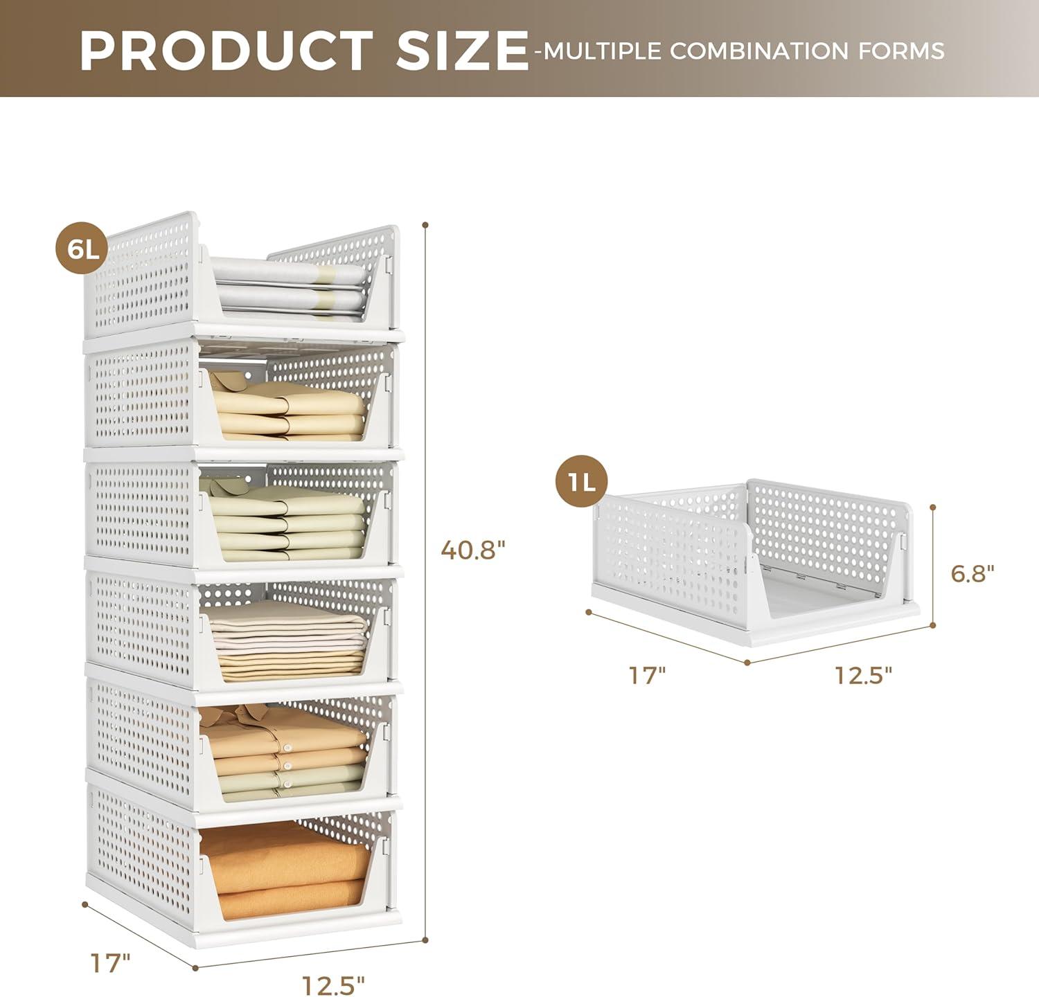 【Assembly Easily & Stackable】: Easy to set up, follow the steps in pictures. Adjust to your own liking by stacking the perfect number to fit your own space. Set of 4 wardrobe clothes organizer can be stackable which make home space organized, max the use of vertical space. You can stack multi-layer wardrobe storage organizer according to your needs freely. Dimensions of each when set up: 17″ x 12.5″ x 6.8″ (L x W x H).