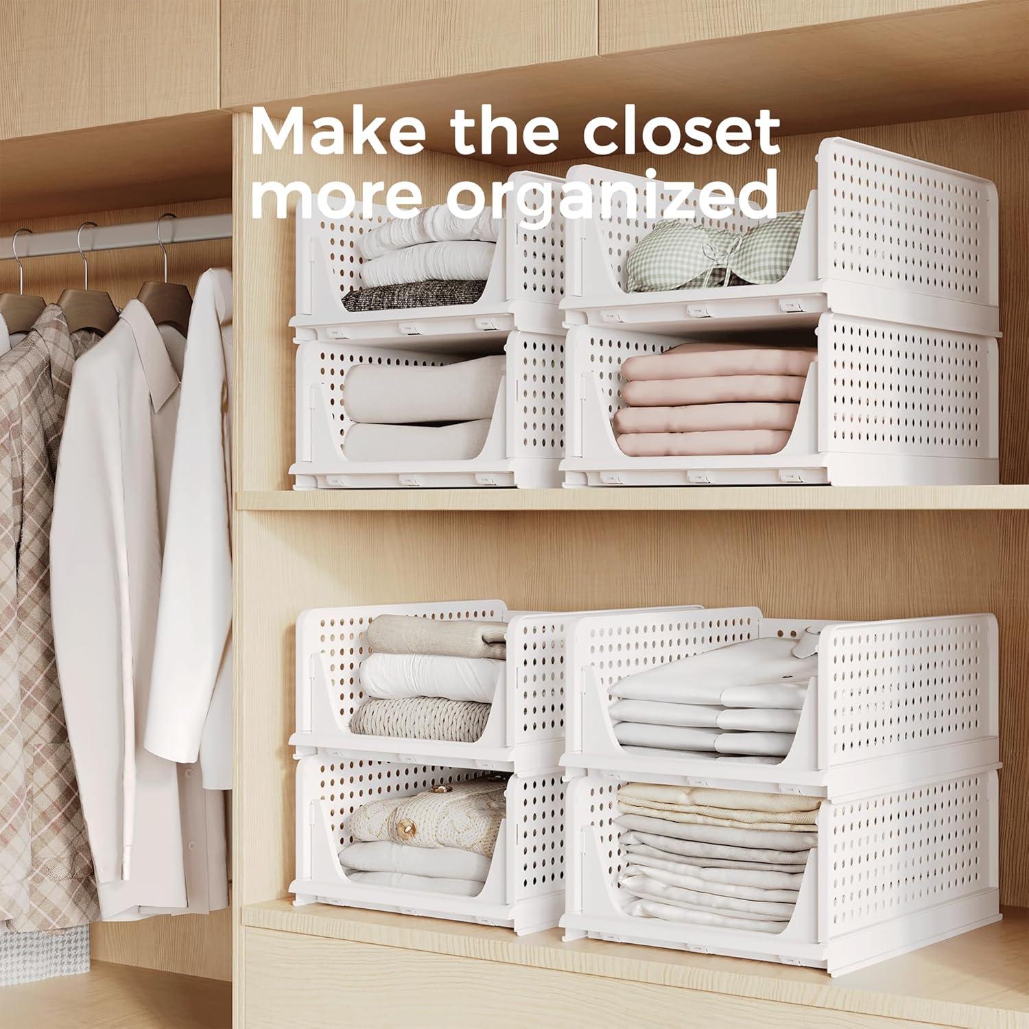 imagePinkpum 8 Pack Closet Organizers and Storage Plastic Stackable Storage Bins Foldable Drawer Shelf Storage Container for Wardrobe Kitchen Bathroom Office Dorm GreyWhite